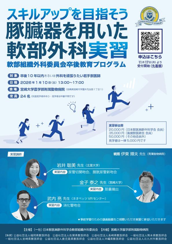 - 卒後10年以内あるいは外科を頑張りたい若手獣医師
